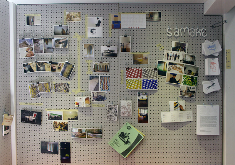 Samare Studio displays their thought process up on the walls. From images, to markets, snow shoes to set squares, nothing is left on the cutting room floor.
