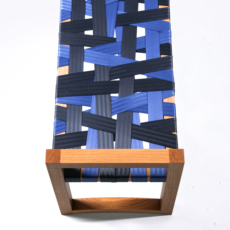 Strap bench by Ottawa-based designer Christopher Solar, is a seat that is made of bold and woven seat belts. The webbed combination is framed by white oak, ash and walnut, which are personally selected by Solar.