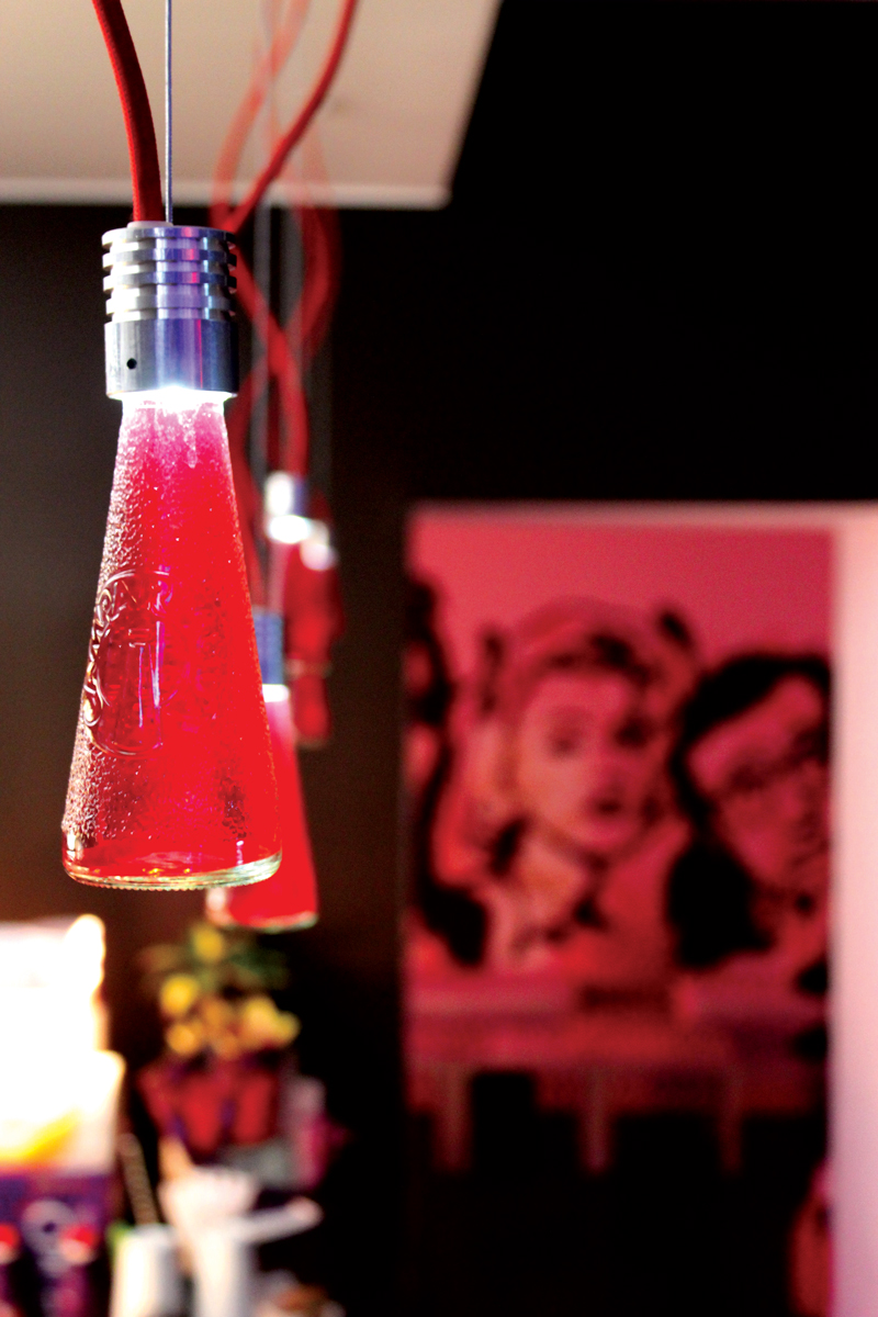 Bottle Up by Italian duo Giuseppe Casuccio and Valerio Palmieri is lamp that lights and promotes a product at the same time. Made from upcycled Campari soda bottles and a detachable LED luminaire that is affixed to the top. A small hole in the crown allows the liquid to evaporate over time, allowing for custom colours and quality of luster to pass through. Fragrances can also be added to the vessel for diffusing aromas in an interior setting.