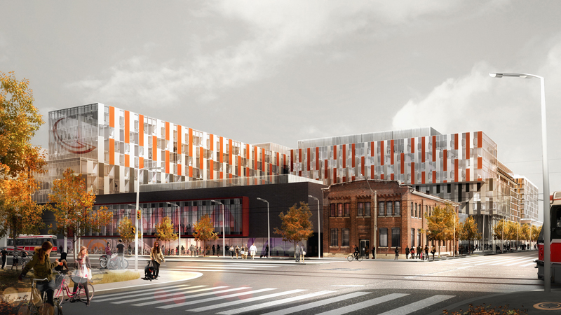 Through human-scaled, pedestrian friendly, user-centric civic gestures, the design of the YMCA facility supports the West Don Lands Precinct Plan and contributes to the urban vision of the Pan Am Athletes Village for a sustainable, vibrant, mixed-use community. The YMCA is operationally distinct but cohesively integrated on the site with the George Brown Student Housing (GBSH) complex. In collaboration with architectsAlliance and KPMB Architects.