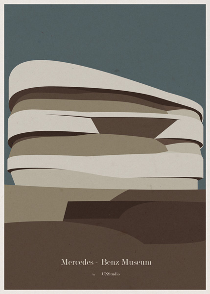 Architect and illustrator André Chiote has created a series of graphics that aims to outline the distinctive qualities of buildings while paying homage to the iconic architectural museums around the world.