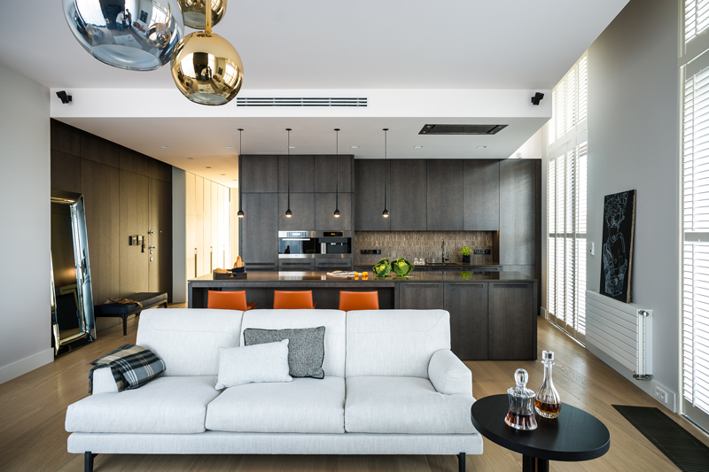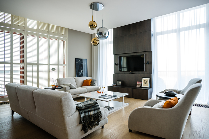REPUBLIKA ARCHITEKTURY has designed a 180 m2 apartment located on the top floor in a high end building not far from the city center of Warsaw, Poland. From the apartment one can enjoy the best views in town as it overlooks the Vistula River and the National Stadium on one side and the Old Town and The University of Warsaw Library on the other.
