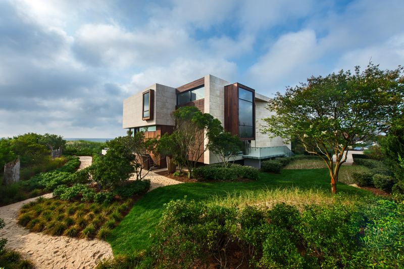 Sited on a narrow, one-acre, oceanfront lot, the design of this house was one of the first projects in the Village of Sagaponack to be affected by the 2010 revision to FEMA flood elevations, requiring a first floor elevation of approximately 17 feet above sea level with a maximum height allowance of 40’. All construction was required to be located landward of the Coastal Erosion Hazard Line. The location within a high velocity (VE) wind zone added to the planning and structural challenges.