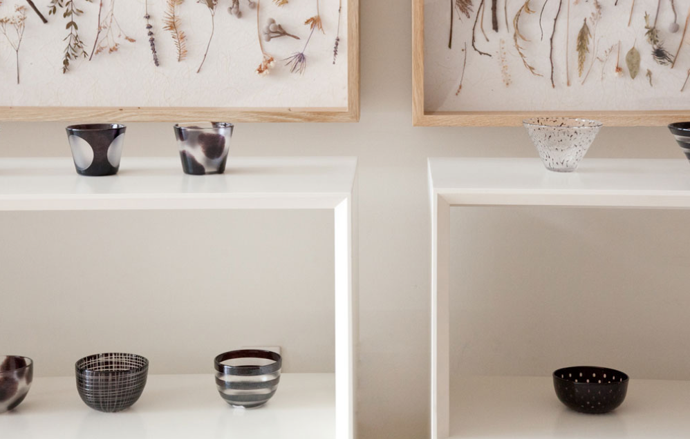 Mjolk recently held first time solo Canadian exhibitions by Kazumi Tsuji and Tomi Takashi, which showcased their modern interpretations of traditional artifacts. Kazumi Tsuji explores the contemporary aspects of Kiriko glasses. The pieces are created using a Japanese technique of layering paper-thin coloured glass over a clear base, allowing Tsuji to cut patterns into the surface to reveal the contrasting tones underneath.