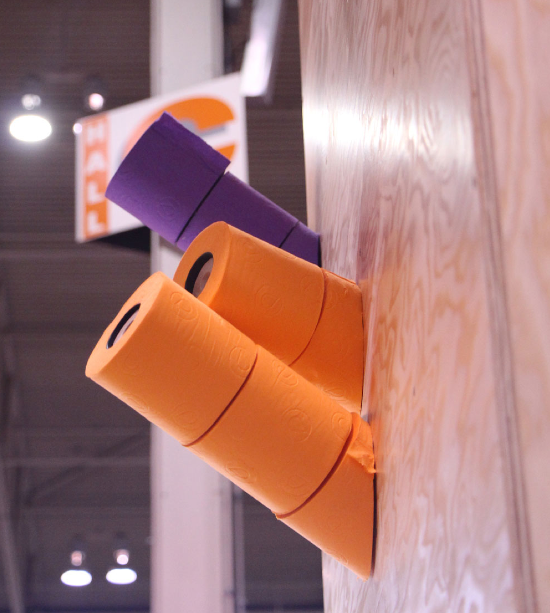 Glamping, also know as “glamourous camping”, was an interactive camp-ground/lounge designed by Mason Studio. Cardboard bears and trees set the stage for an environment full of inflatable and tufted furniture. This urban get-a-way fused the great Canadian outdoors with the modern comforts of the great indoors. The installation focused on showcasing the products of other vendors, sparking a conversation about the space and the displayed articles.