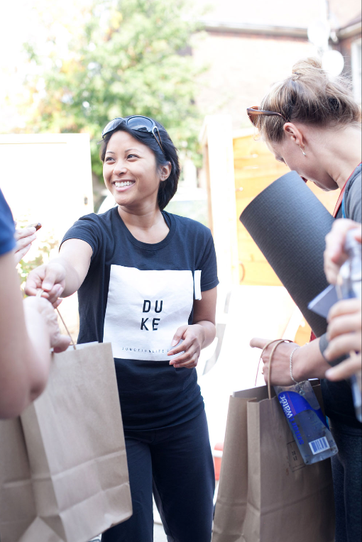Lead by David Good the session focused on foundation and balance to reflect us as city builders. Ranging in all ages, 60 individuals spread their mats and did their best warrior pose on an empty site. Despite the fact that it was late September, the day was so beautiful that we joked we should have all put sunscreen on to protect us from the rays. After the event the participants where invited to a sneak peak at our DUKE Condos sales centre (now open to the public) to pick up a complimentary sway bag.