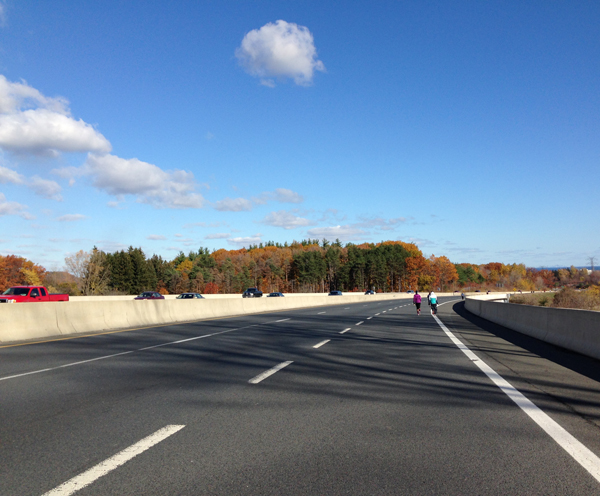 The reason why I decided to take part in this marathon, (this is not my first and probably not my last marathon) was because I got to race down the Red Hill Valley Parkway. This stretch of expressway, which connects to the Queen Elizabeth Way, is only accessible by car. And when I travelled on it, the blurred landscape that is so fleeting from the window of a vehicle became more vast and expansive. Being surrounded by nature on a concrete plateau lent an elevated experience to my run.