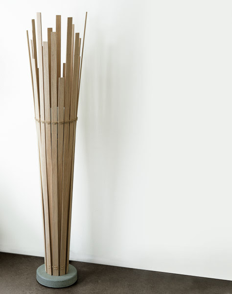 The third piece Christopher Solar will be showing at the Interior Design Show is the Burst floor lamp. This tall lamp consists of a set of matched ash slats radiating up and out from a polished concrete base. The slats are laced together with Danish cord and surround a diffused bulb. The result is a dramatic interplay between light and dark, regardless of whether the lamp is on or off. When on, the lamp provides soft illumination and casts subtle patterns on the walls and ceiling.