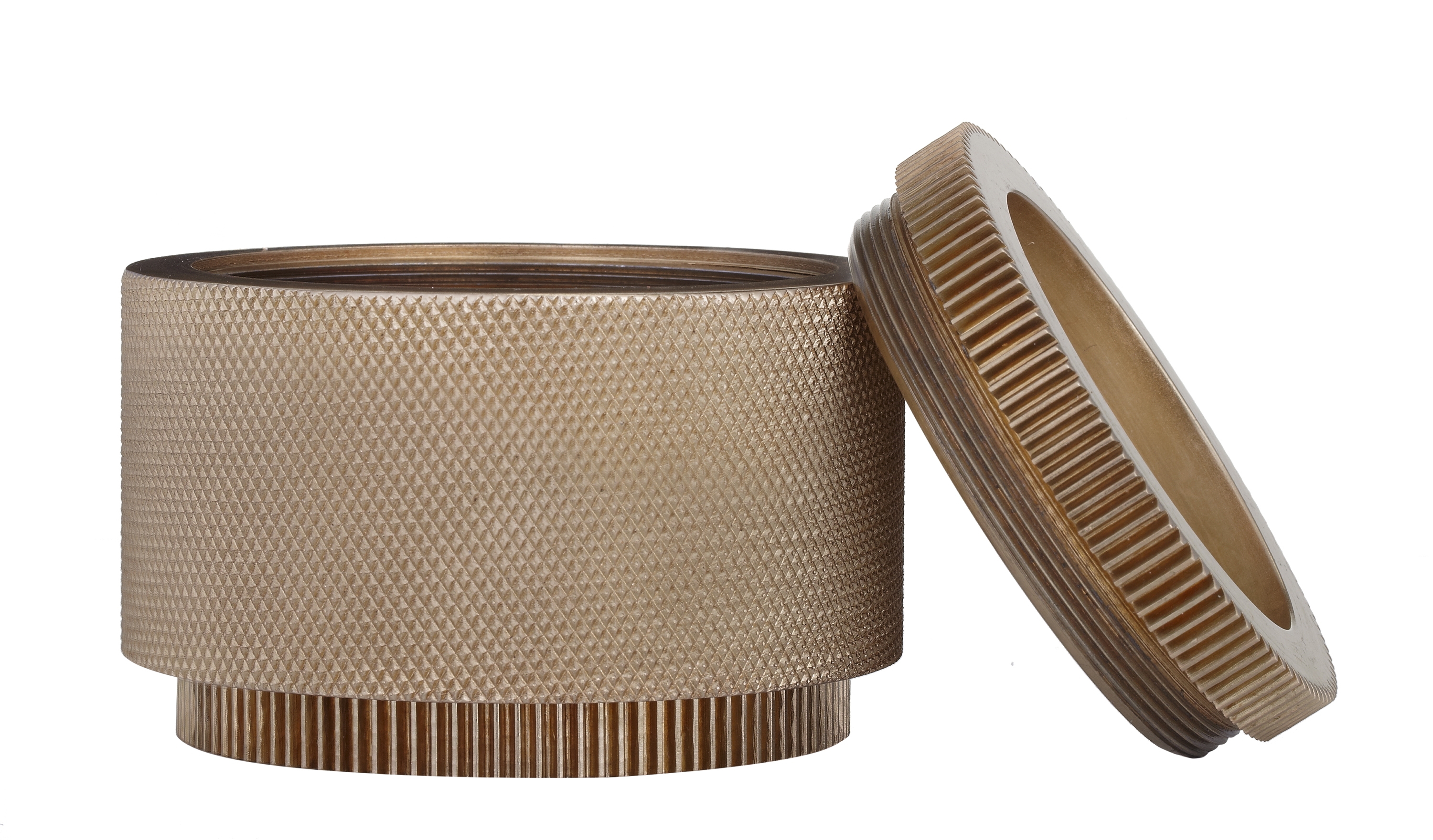 Knurling on each piece allows a firm grip.