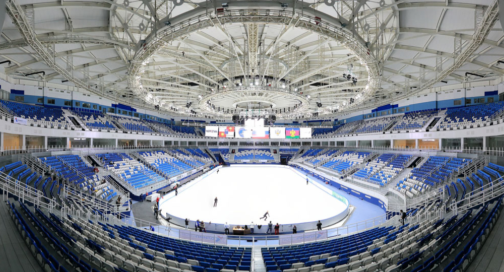 On the exterior the Games’ branding and colour scheme is referenced in the shades of blue, while the silhouettes of the surrounding mountains and the waves from the black sea are reflected in the structures undulating form. The advantage to having a flexible design as this ones means it takes only two hours to adjust the ice field between figure staking and short track configurations.