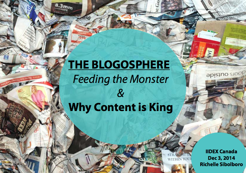Richelle Sibolboro will be presenting this seminar at IIDEX Canada on December 3, 2014 will look at the truth behind the blogosphere and how easy it is to get work published if you know the right channels to feed the monster.