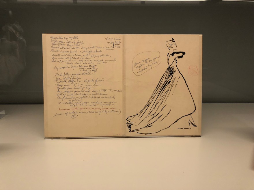 Upon entering the space, it is very dark. And it’s kept this way to preserve the integrity of the dresses. But as a visitor, it adds a barrier to the experience as most exhibitions are based on the visual representation of the material. And when the room is dark it makes it very hard to get into.