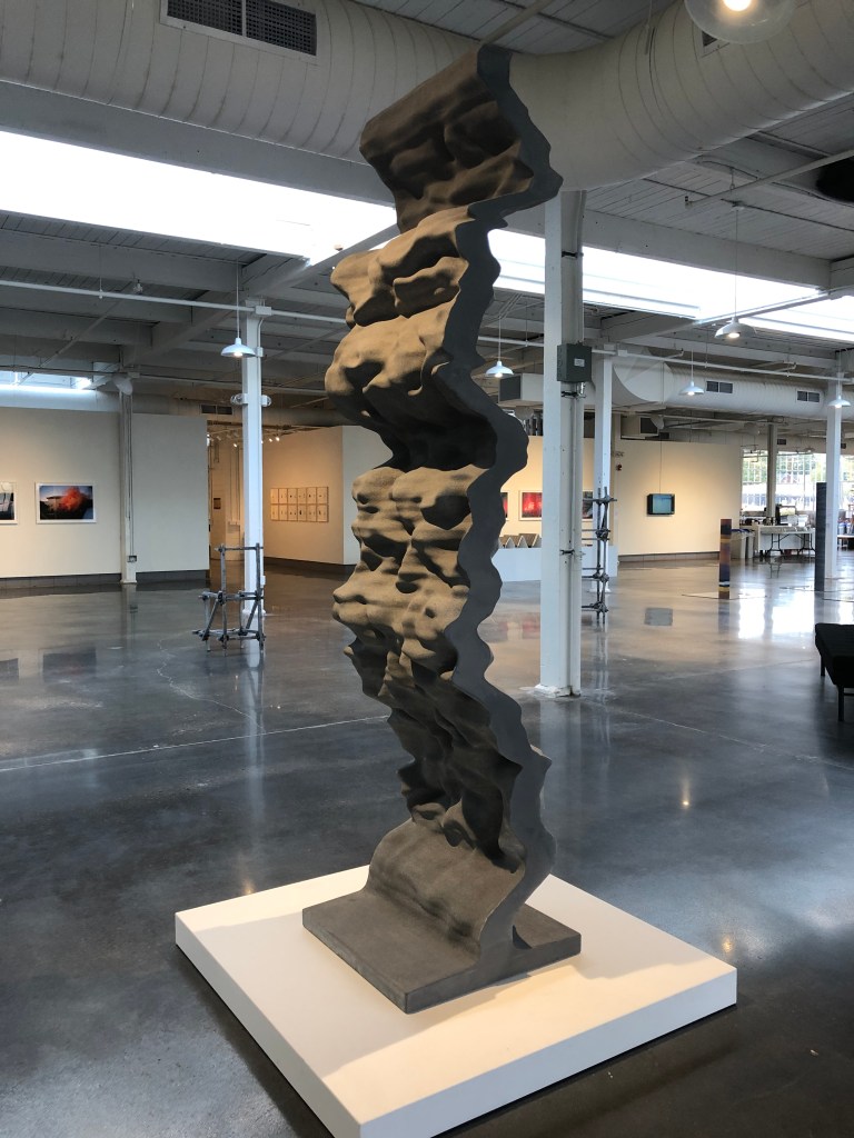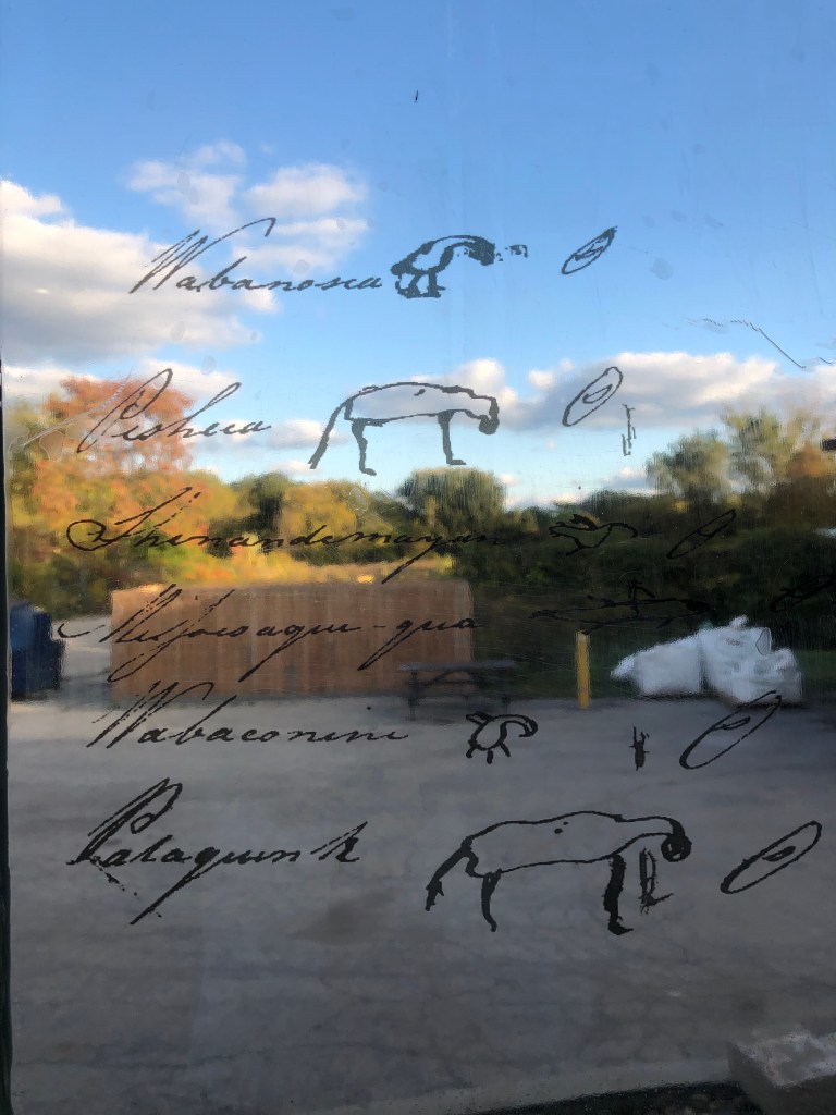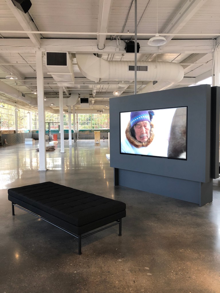 The undulating edges of the monumental sculpture The Flow Between Hard Places represent the sound waves created when uttering the word pasapkedjinawong in Anishinaabemowin (“the river that passes between the rocks”), as spoken by Anishnaabe Elder Rose Wawatie-Beaudoin. A river is constantly in motion – a symbol for the power of nature and the passage of time. Monnet points to a critical historic moment one hundred years ago when Chief Pakinawatik from Kitigan Zibi (Maniwaki) travelled 600 kilometres through waterways to Toronto with sixty other Algonquins to request from the Office of the Governor General that parts of their traditional territory be returned.