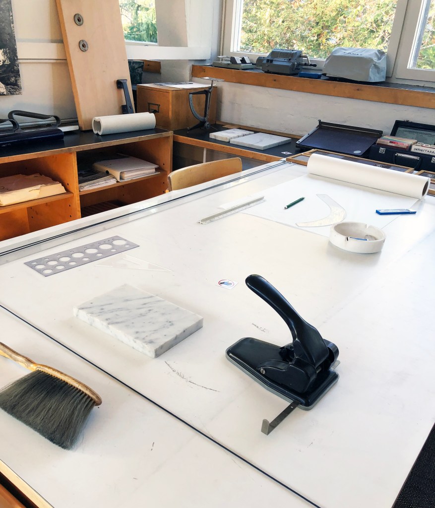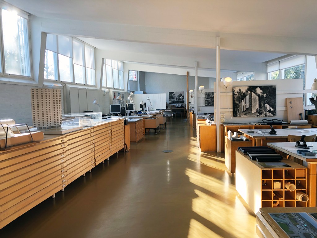 Alvar Aalto is considered the master of Finnish design. Last year when I was in Helsinki, I took decided to go on an Aalto tour to his office located at Tiilimäki 20 in Munkkiniemi. The building is only a short walk from Aalto’s own house (which I will also show in another photo essay), where his office had previously been located. Studio Aalto is one of the best of Alvar Aalto’s 1950s buildings.
