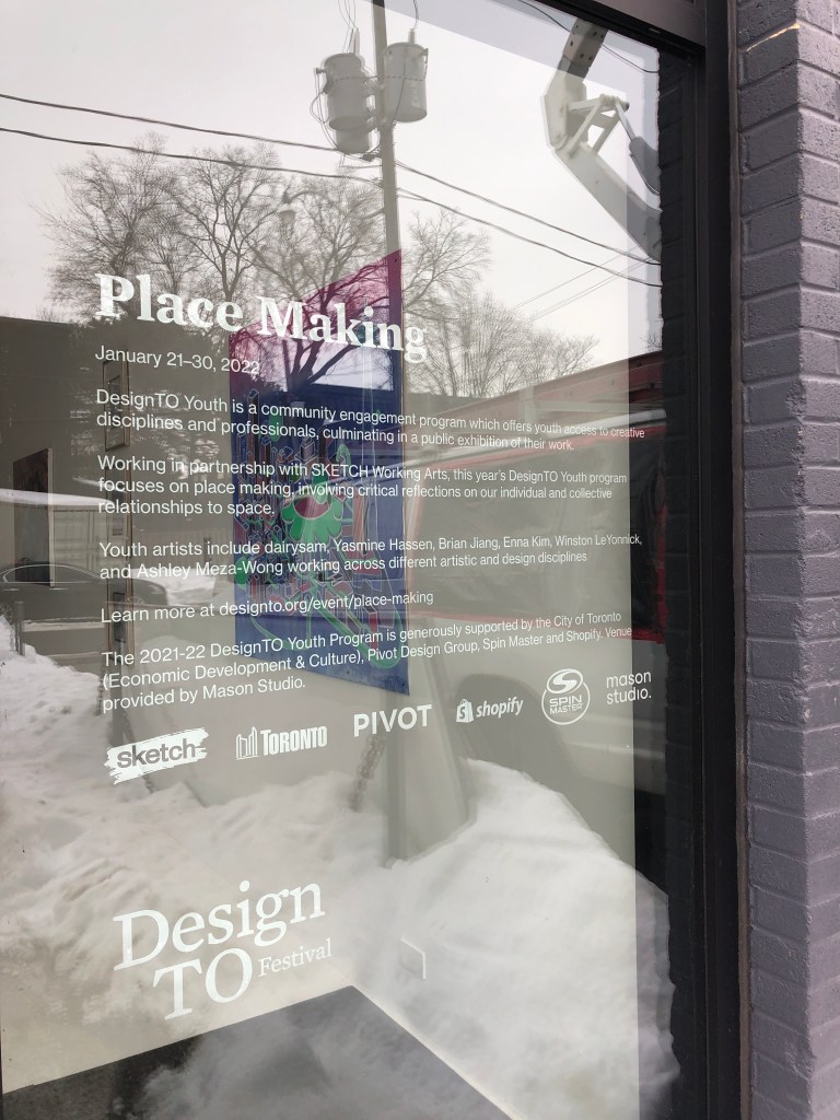 DesignTO Youth is a community engagement program which offers youth access to creative disciplines and professionals, culminating in a public exhibition of their work. Working in partnership with SKETCH Working Arts, this year’s DesignTO Youth program focuses on place making, involving critical reflections on our individual and collective relationships to space.
