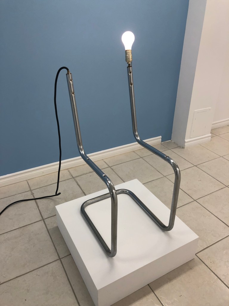 This is actually a tech piece. I was drawn to this because among all the static pieces this was dynamic. There was movement, although simple. It was really something different. As technology like furniture and the other pieces in this exhibition are just “thrown away”, finding innovative ways of recycling tech junk will be part of our reality. This gives us a glimpse into the future of new treasures which were once considered tech trash becomes new treasures.
